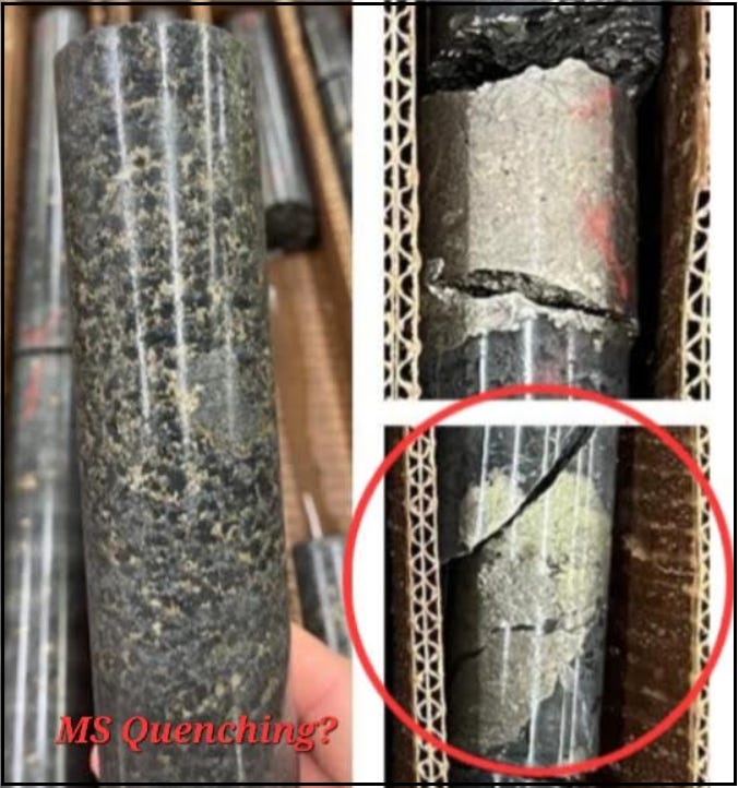 Brian Goldner in interview remarked, “There are no dumb questions,” when trying to unpack the geological events that led to the mineralization at Tamarack. One potential hypothesis I’ve contemplated is that we’re looking at the remnants of a second magmatic pulse undergoing thermal erosion, “plucking” existing mineralization from an earlier ore-forming event at depth, and later transporting the clasts higher up or laterally along a magmatic conduit feeder structure.